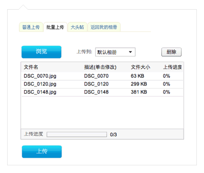 可以非常方便的批量上傳自己的圖片,也可進行大頭貼拍照。
